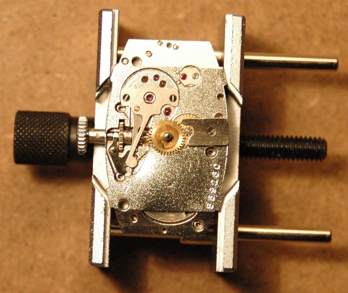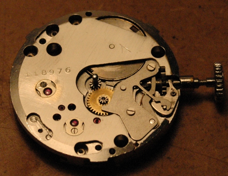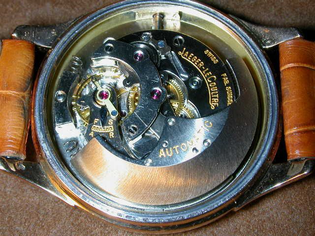 La montre présentée ci-après a la particularité d'avoir un fond transparent laissant apparaître le mouvement et les mouvements du bumper (montage réalisé par mes soins en l'absence du fond en acier d'origine).