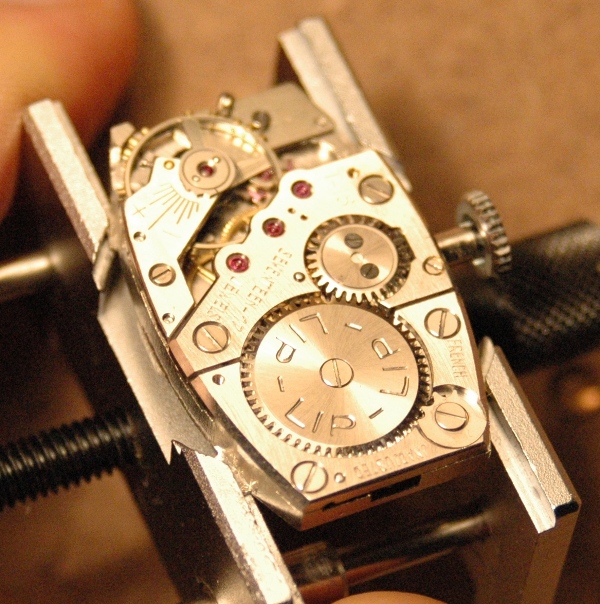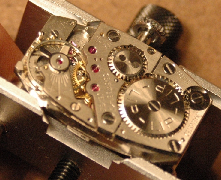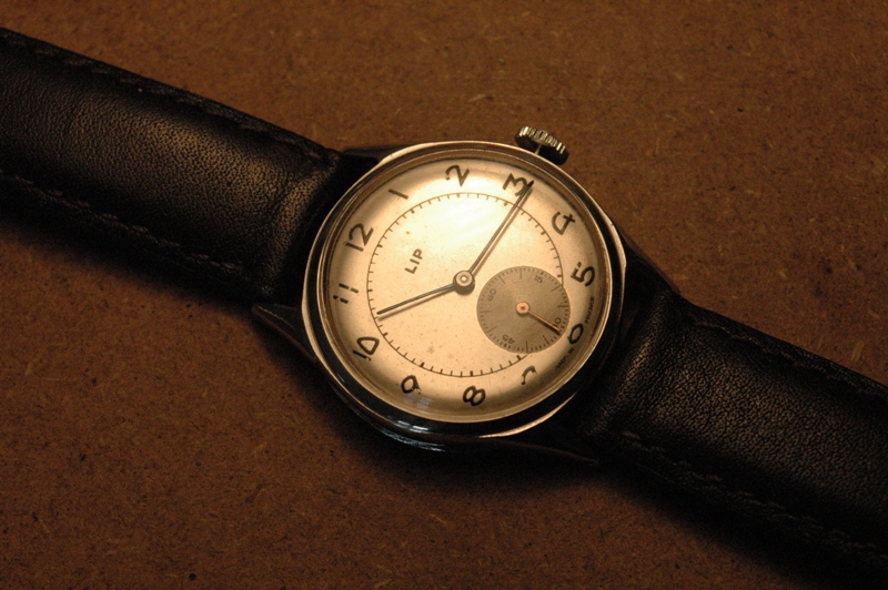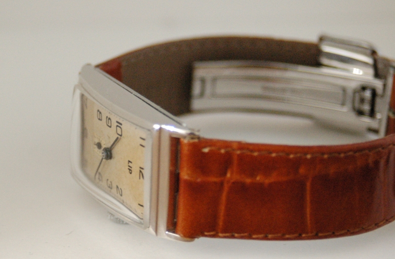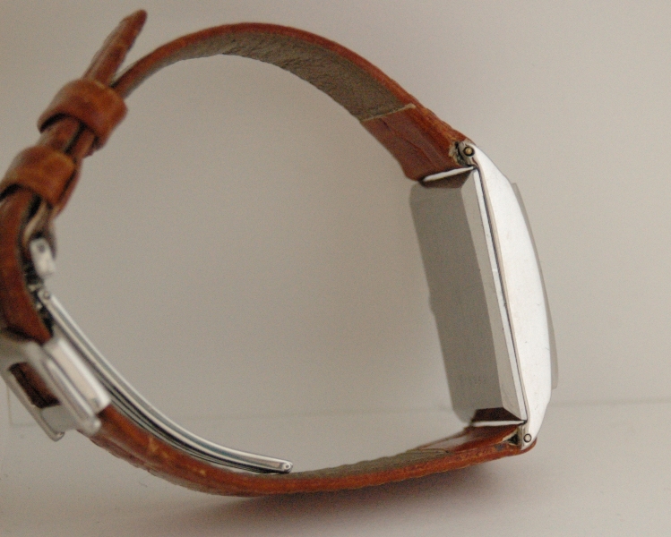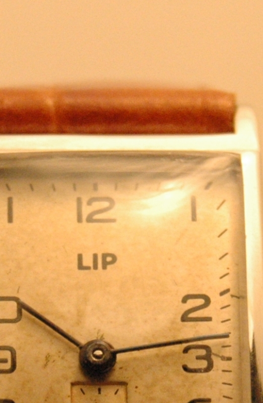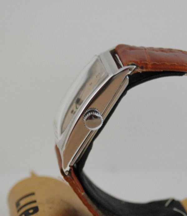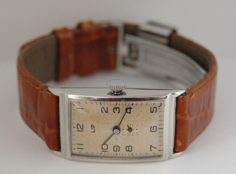 Voici un bel exemplaire de Lip classique. Sa forme rectangulaire en fait une montre très classe, d'une rare élégance avec son cadran patiné.