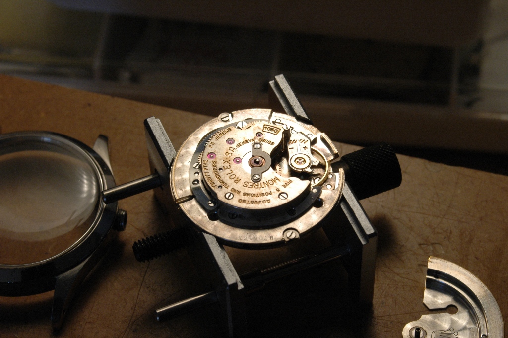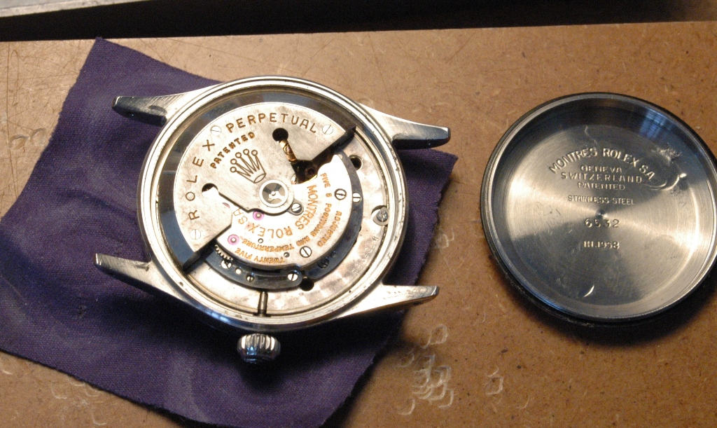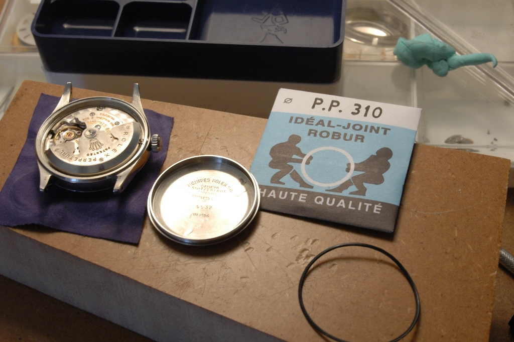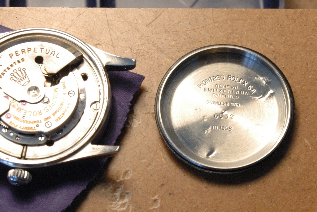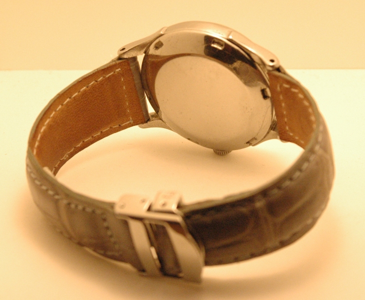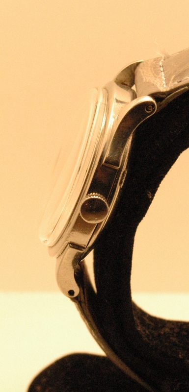 Une nouvelle Rolex dans cette rubrique, encore plus ancienne que la précédente : cette simple Oyster date de 1954 et possède le mouvement Rolex 645. Elle a un fond dit semi bubble back, car le fond était bombé pour loger la masse oscillante. Cette montre a été entièrement restaurée par mes soins (cf. révision de cette montre sous ce lien)