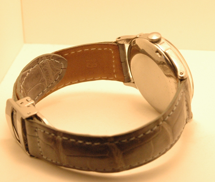 Cadran à petite seconde qui possède une magnifique patine. Cette montre est assez imposante pour l'époque, avec 36mm de diamètre.