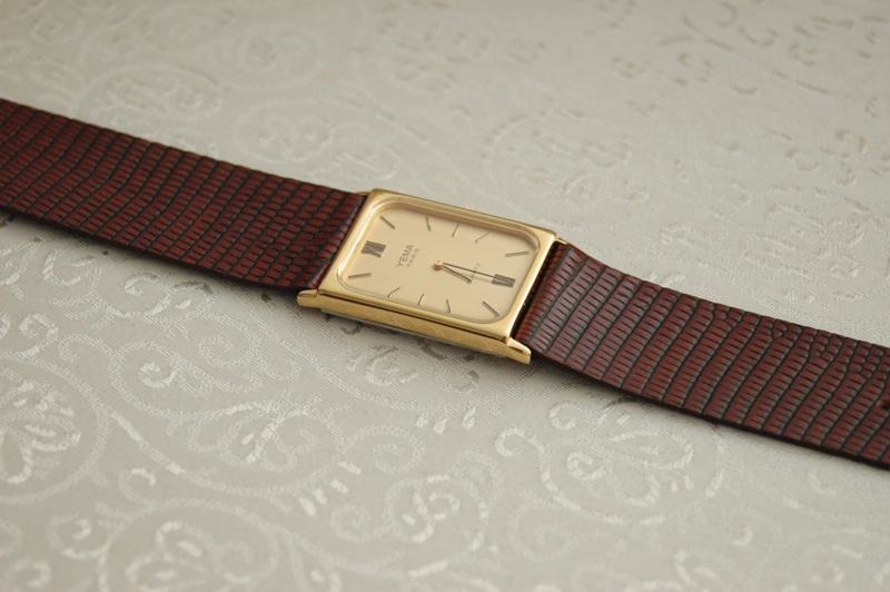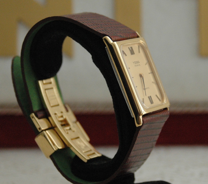 Avec un tel cadran jauni, le must consistait à trouver un bracelet à la teinte coordonnée. Ici, un très beau croco de Louisiane.