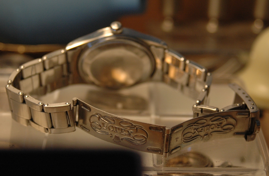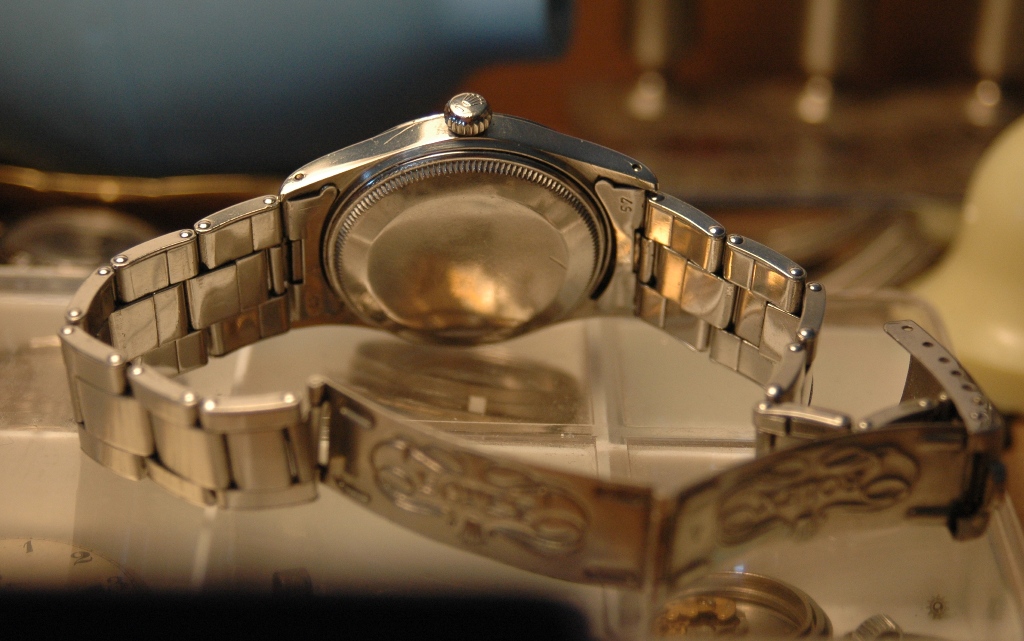La boucle est aussi particluière, car très travaillée. Ceci est typique des Rolex les plus anciennes.