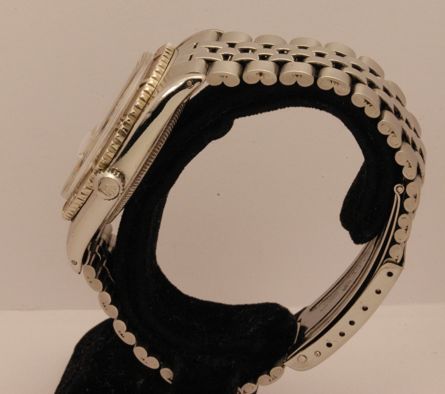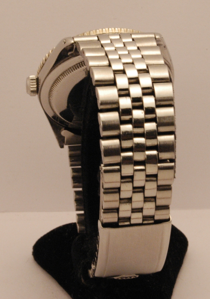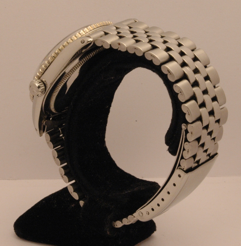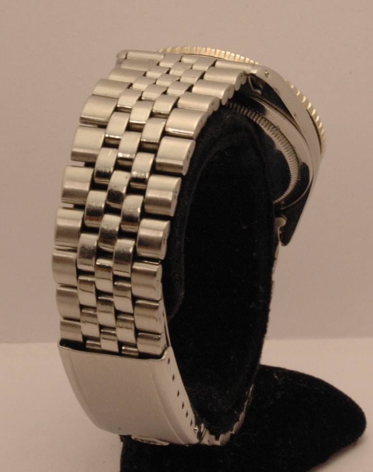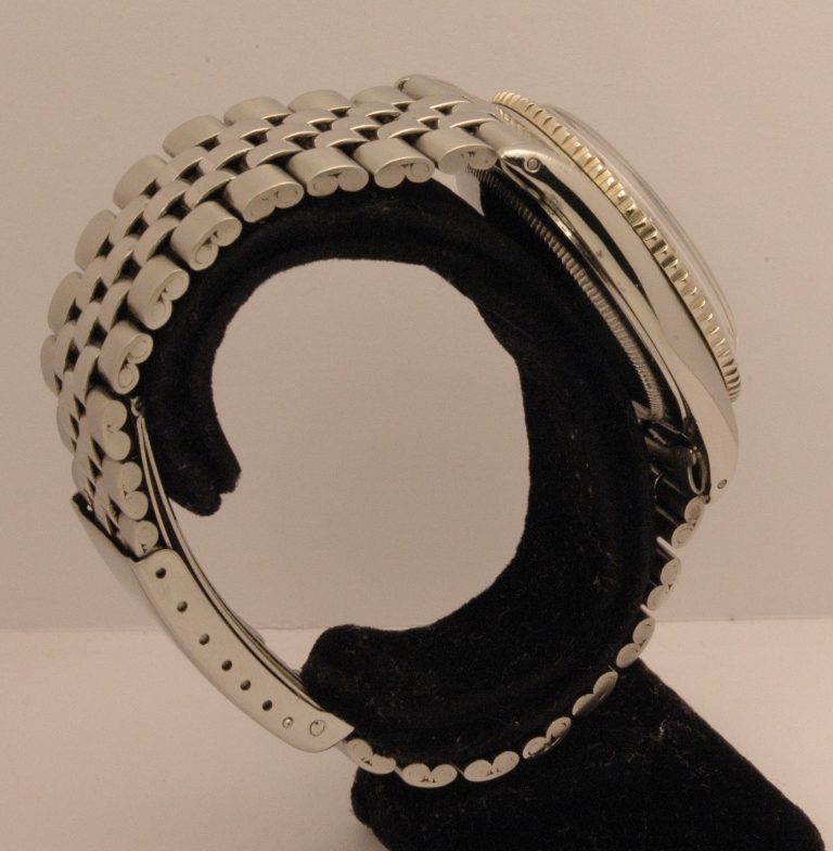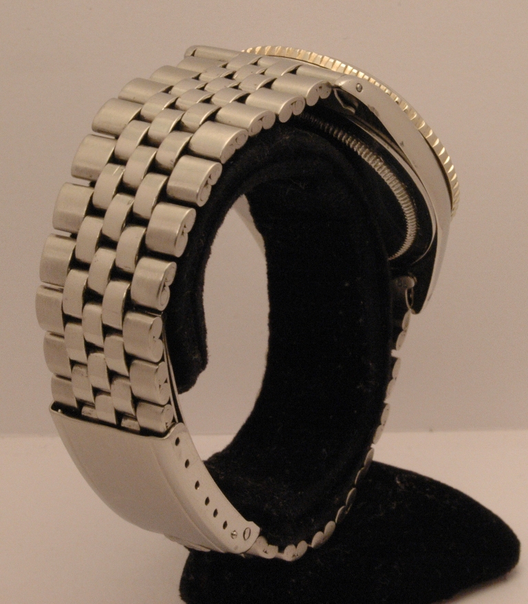 Son fond noir lui donne un look un peu plus sportif, voir militaire. Le bracelet d'origine présente une boucle très riche en ornementations et chose rare, les maillons ne sont pas détendus.