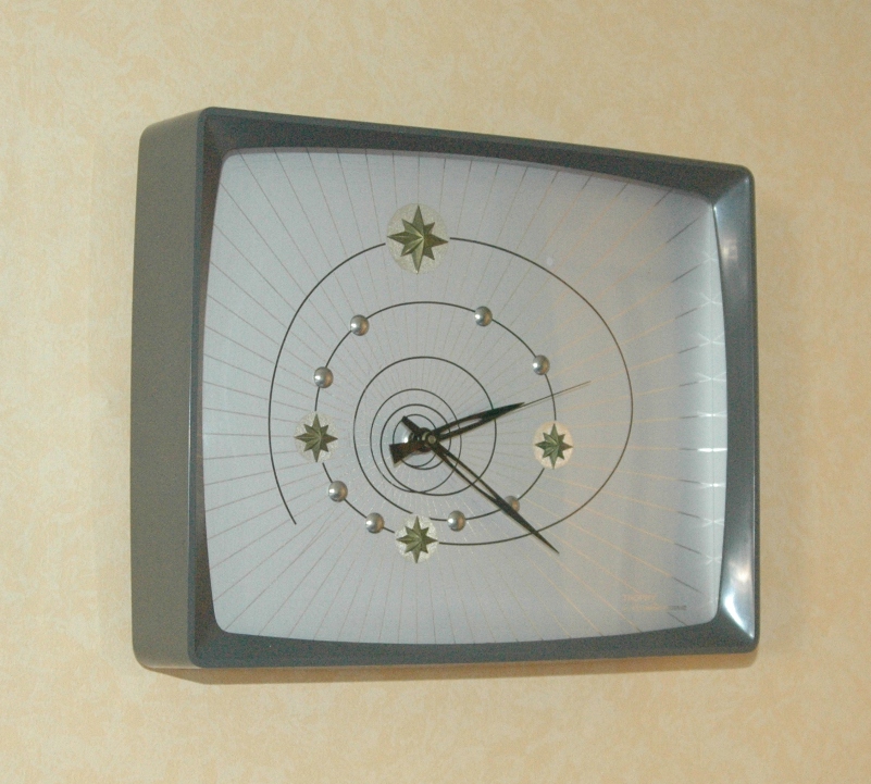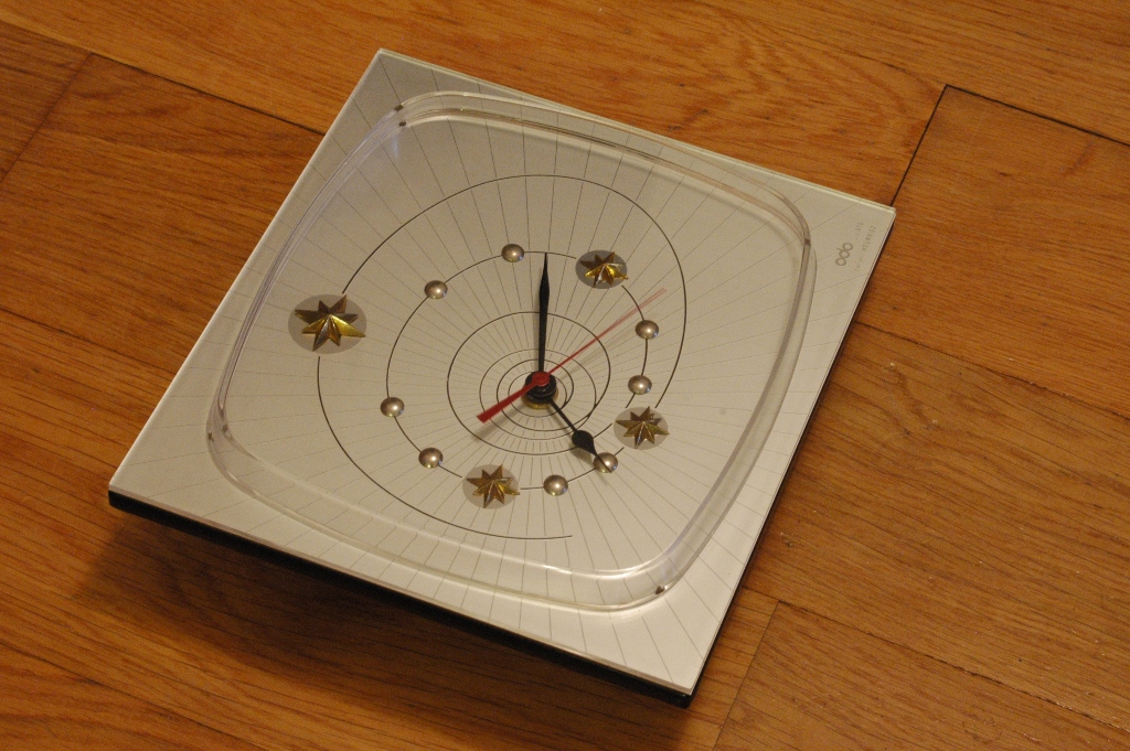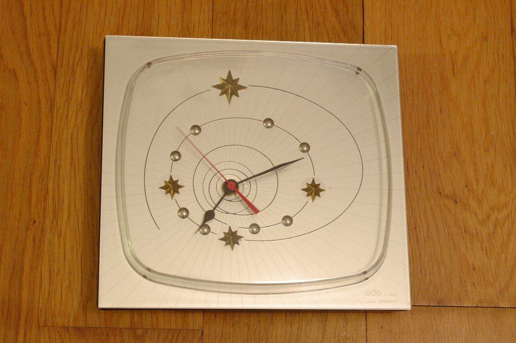 Voici la mythique pendule ORTF : la pendule représentant la mire dans les années 60. Popularisée récemment par l'émission "Les enfants de la télé" ou faisant son apparition dans la série "Un gar, une fille", cett pendule fait partie intégrante de la culture française, toujours bien présente dans les esprits.