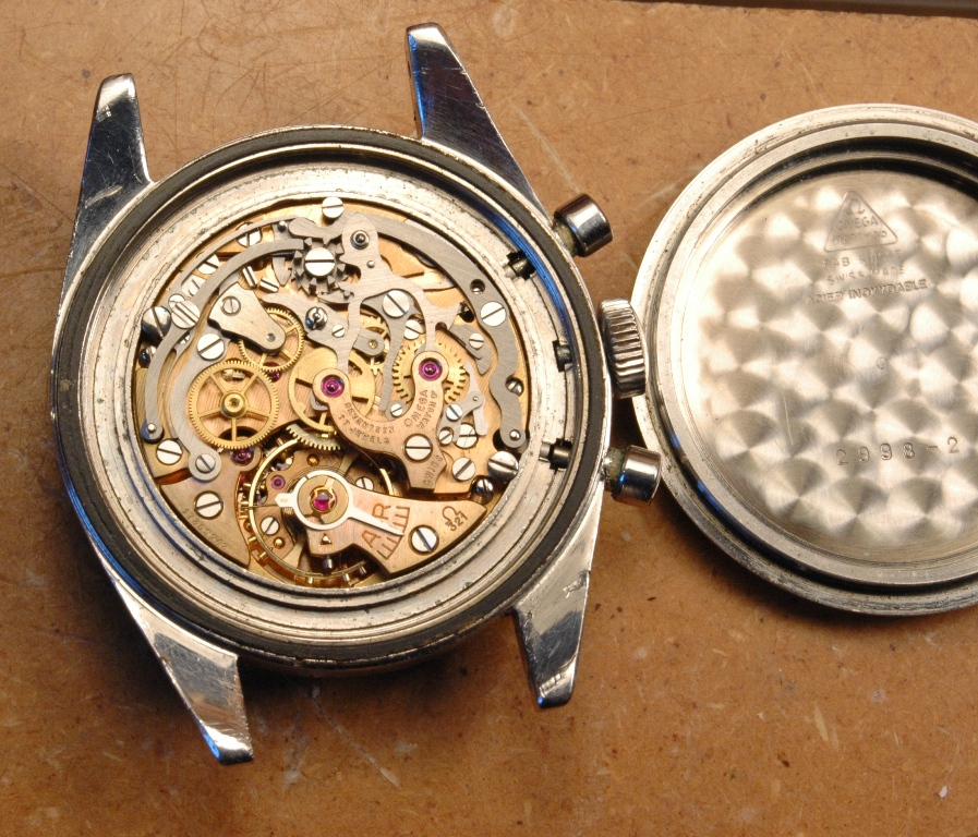 J'ouvre le fond de boite et je découvre le calibre chronographe Omega 321, protégé par un cache poussière :