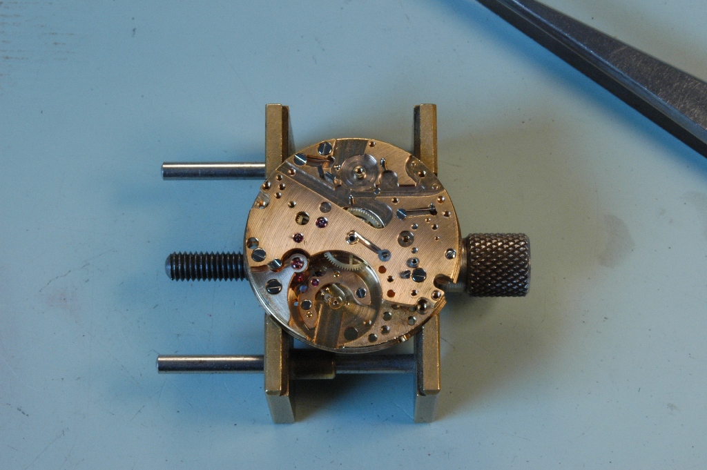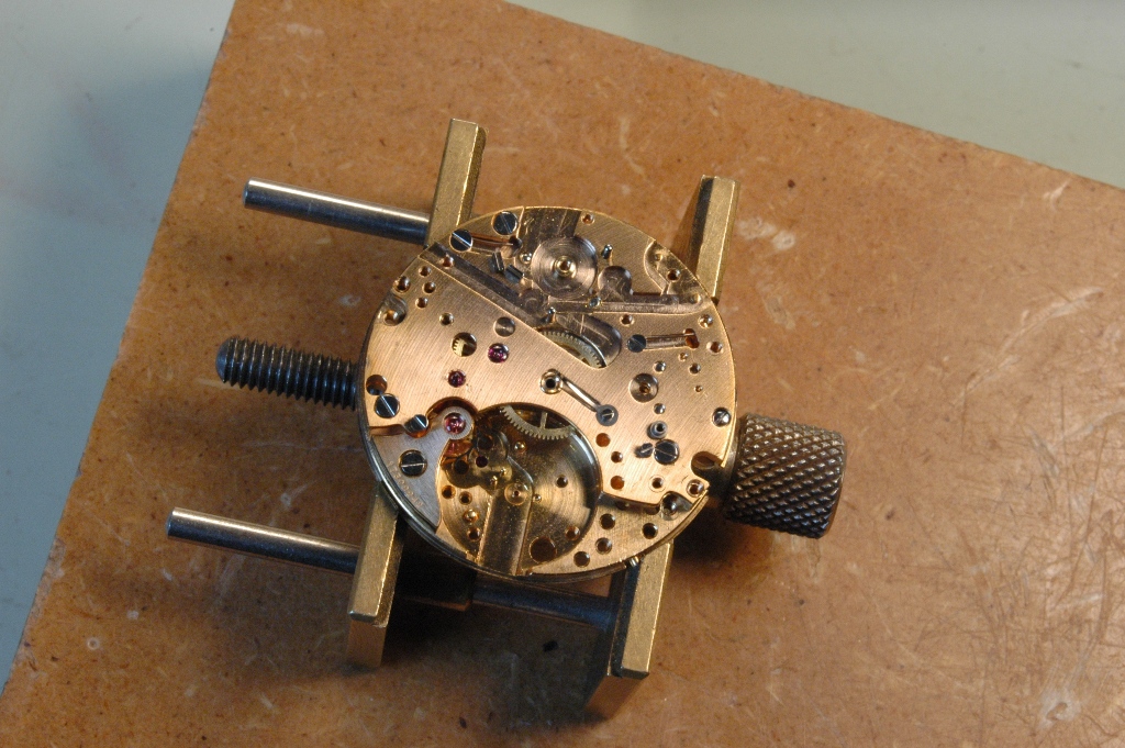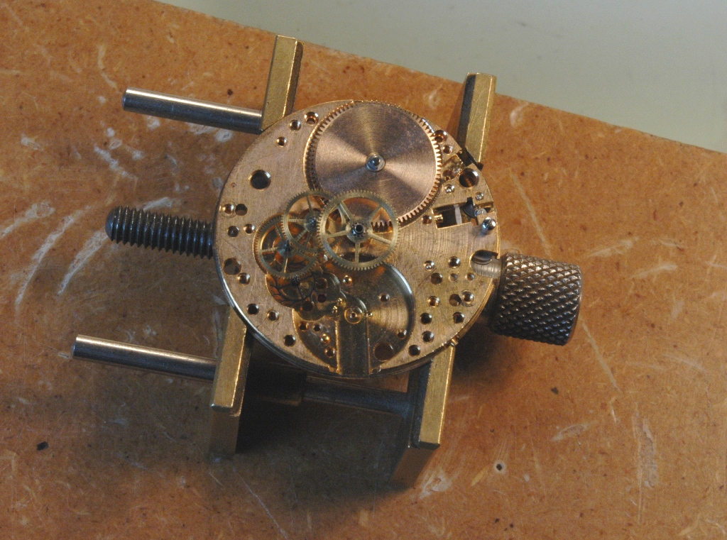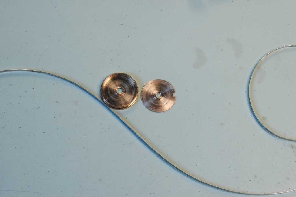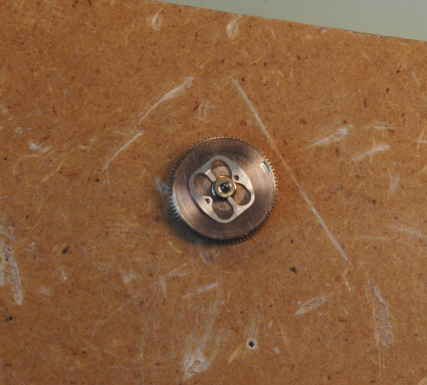 Je repose la minuterie et je mets le pont en place, ensuite la roue d'échappement et son pont séparé. Je huile.