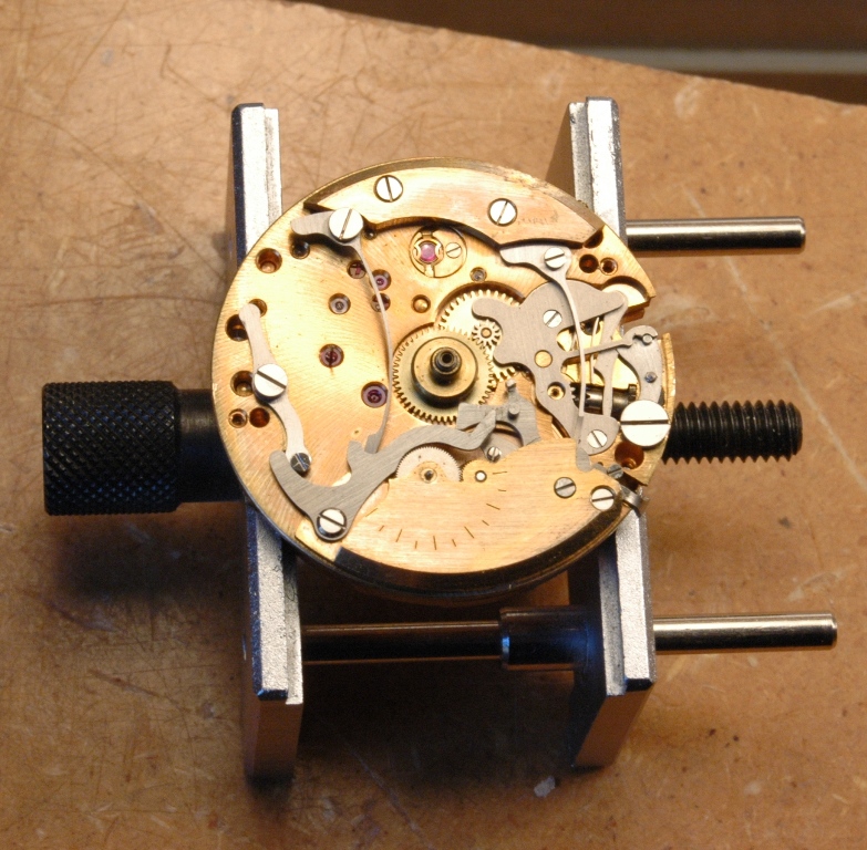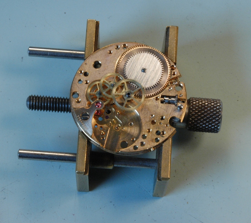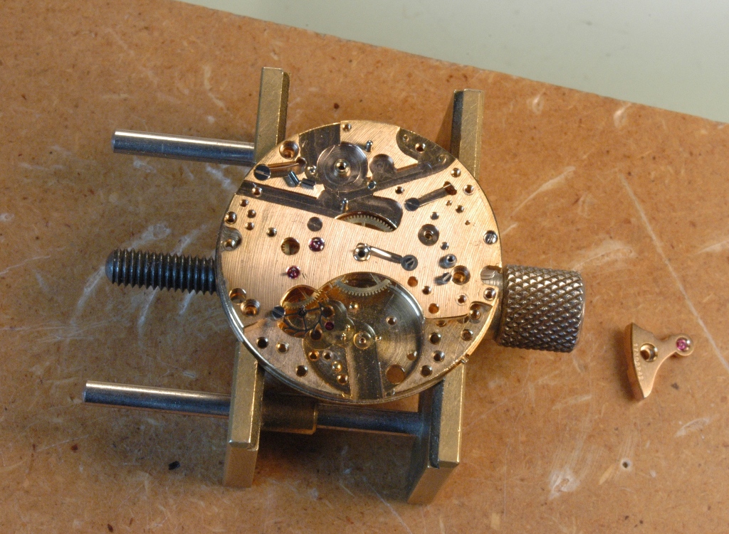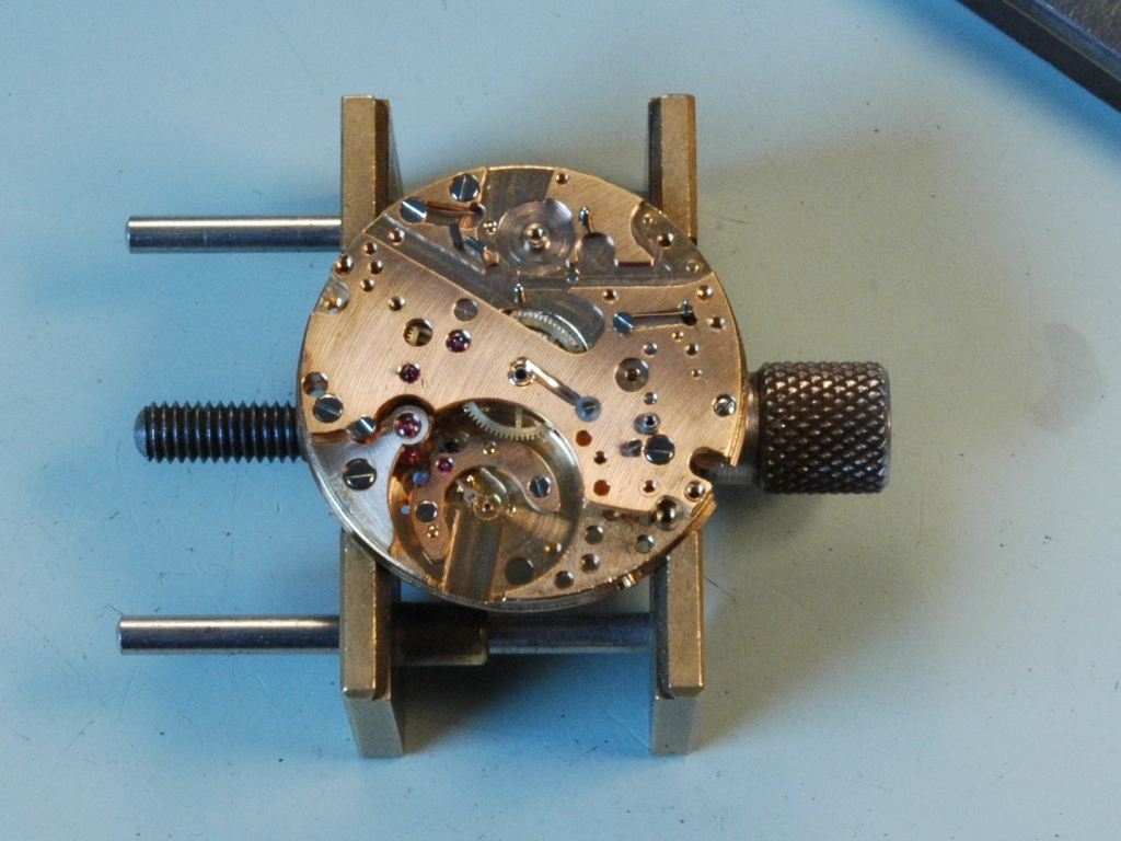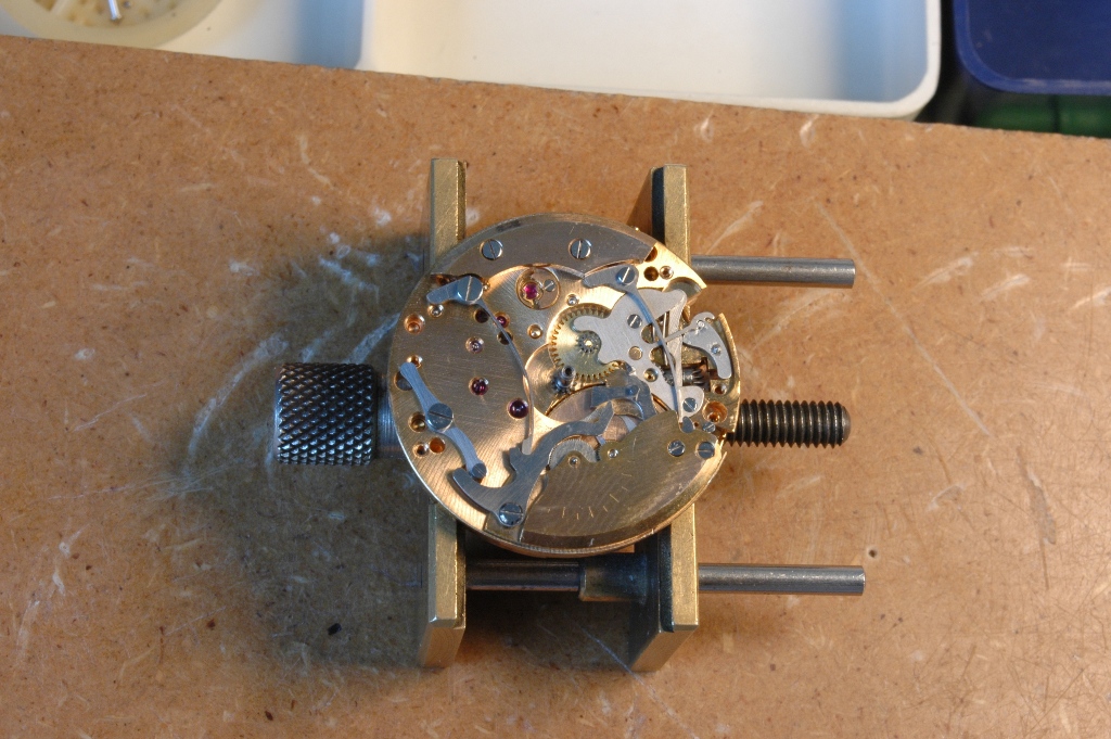 Je repose la minuterie et je mets le pont en place, ensuite la roue d'échappement et son pont séparé. Je huile.