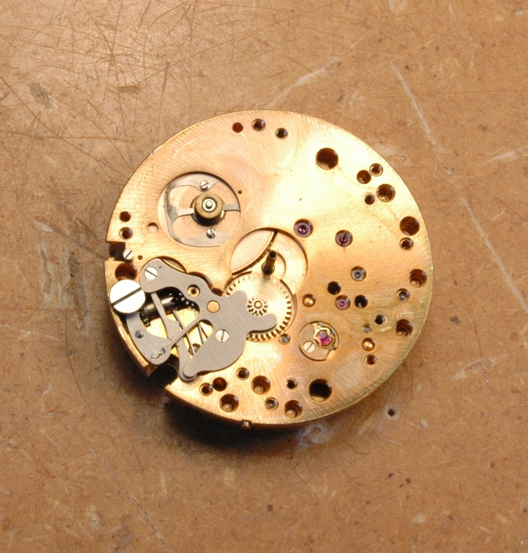 La platine de la montre est à nu. Le mouvement est maintenant intégralement démonté et les pièces nettoyées dans leurs moindres recoins..