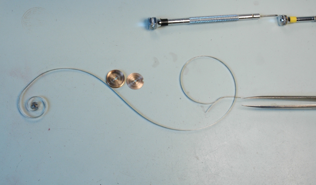 Je remplace un ressort sautoir qui était HS, on voit bien la différence de forme (le vieux est avachi, il a perdu toute force).