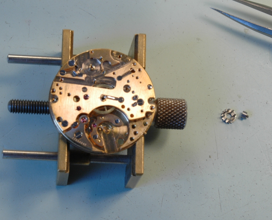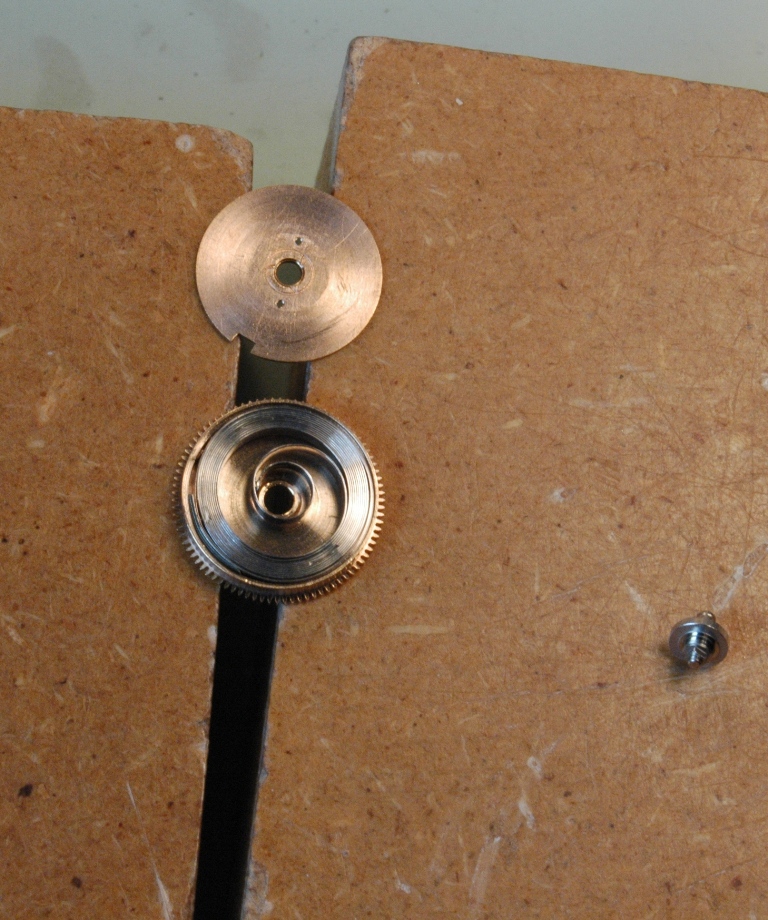 Après quelques instants, je dépose le pont de minuterie, puis je dépose le barillet, je l'ouvre et je sors le ressort.