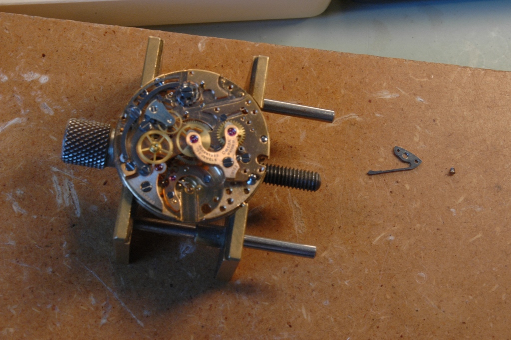 Je dépose les aiguilles puis le cadran puis je commence à oter les premières pièces du chrono.