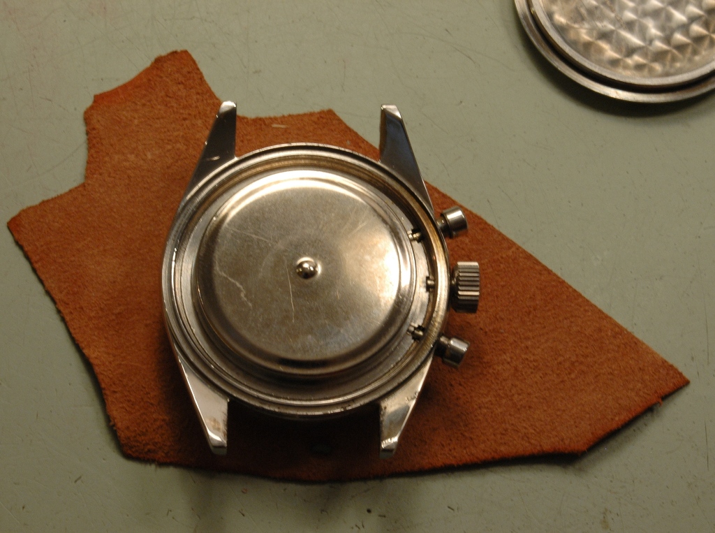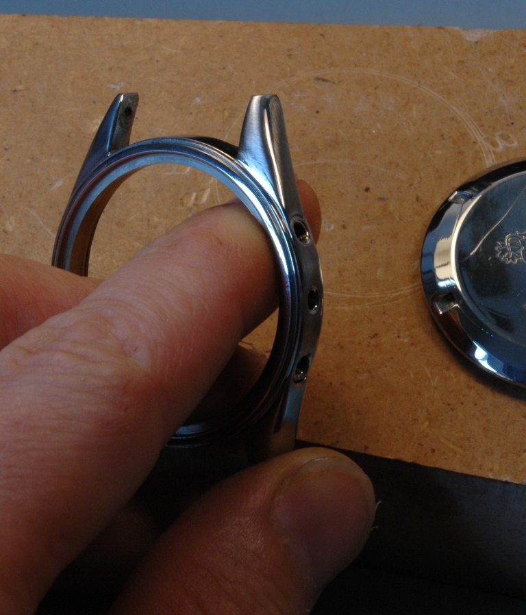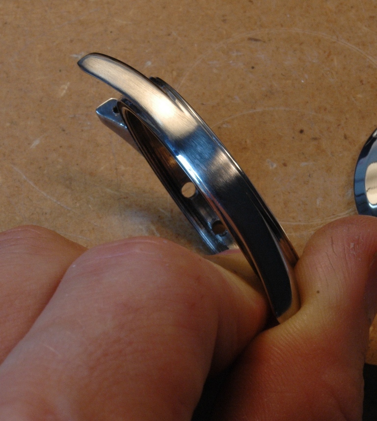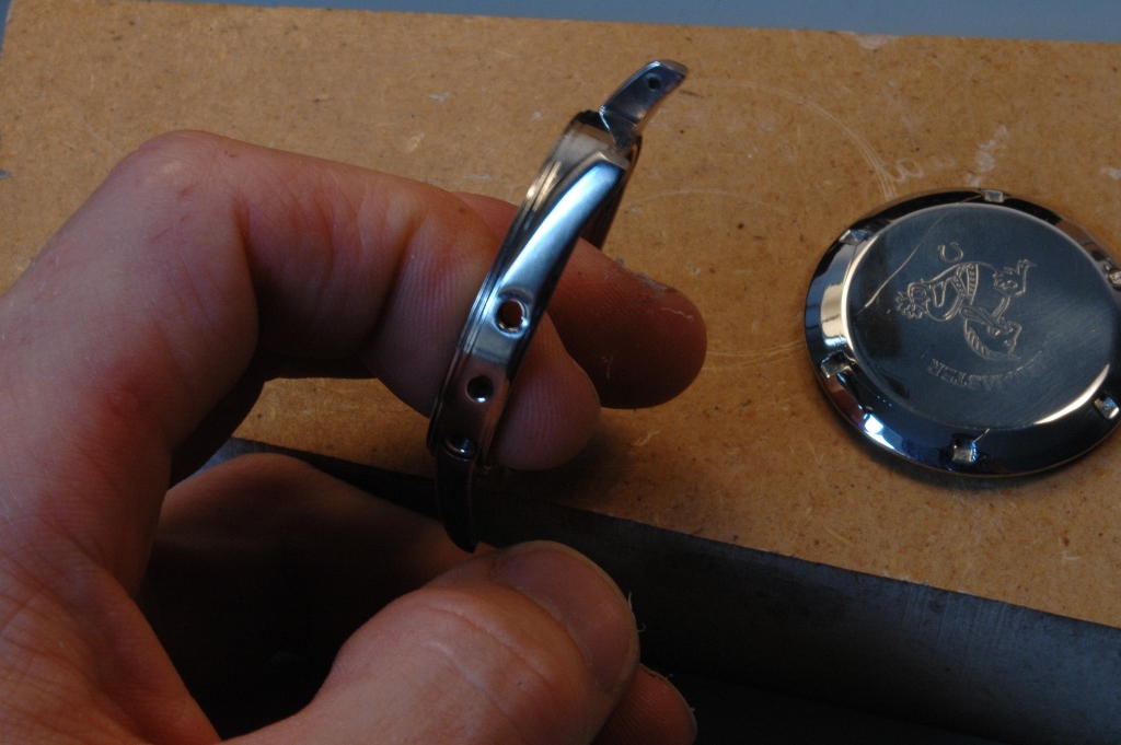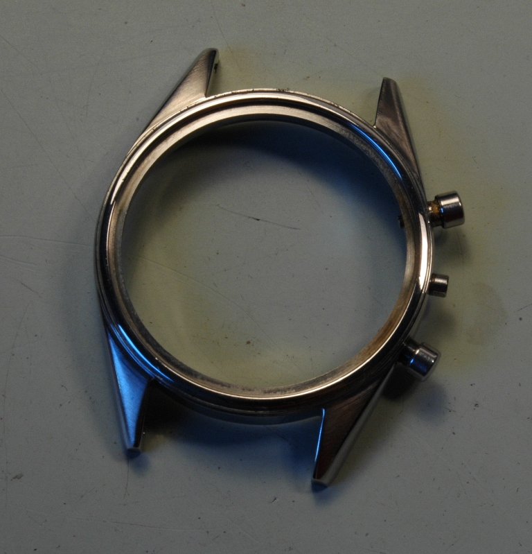 Je démarre la phase de polissage du boitier. C'est un travail très long à respirer la poussière et se bruler les mains car le boitier devient très chaud. Le résultat est à la hauteur : brossage sur les cotés et sur le dessus des anses, avec le biseau poli mirroir, dont les contours sont nets avec des arrêtes bien vives, ceci malgré les traces de chocs qui étaient présentes initialement.