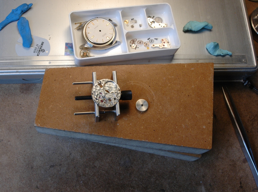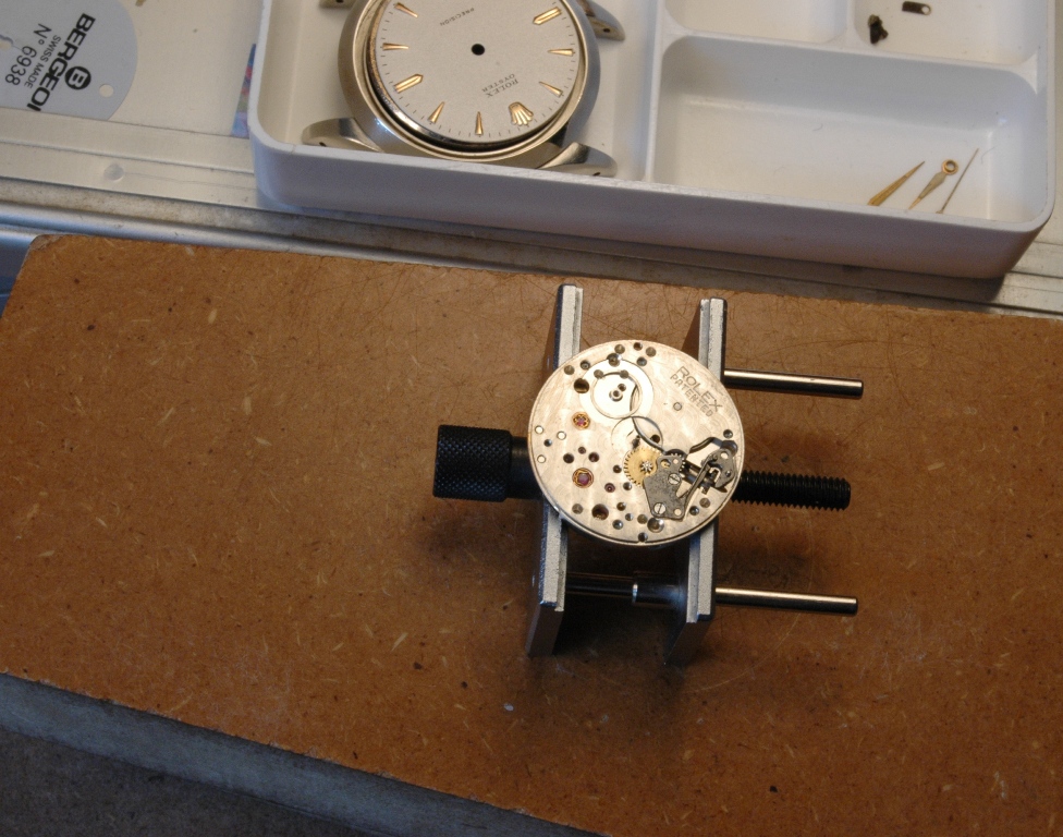 Je dépose la couronne, je désemboite puis je dépose les aiguilles et le cadran :