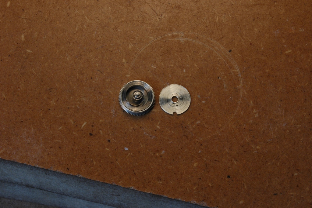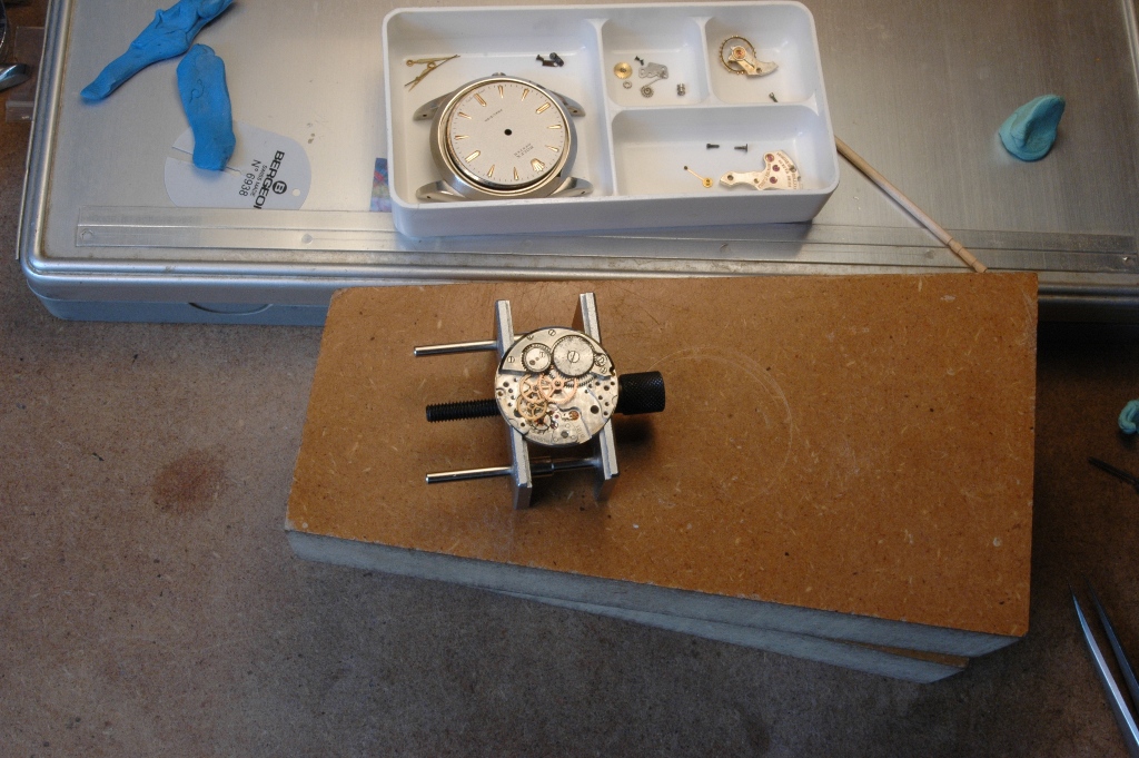 A ce stade, le cadran sera effacé puis repeint, et le mouvement rejoindra la machine à laver. Il en ressort propre après quelques dizaines de minutes et le démontage complet peut alors commencer :