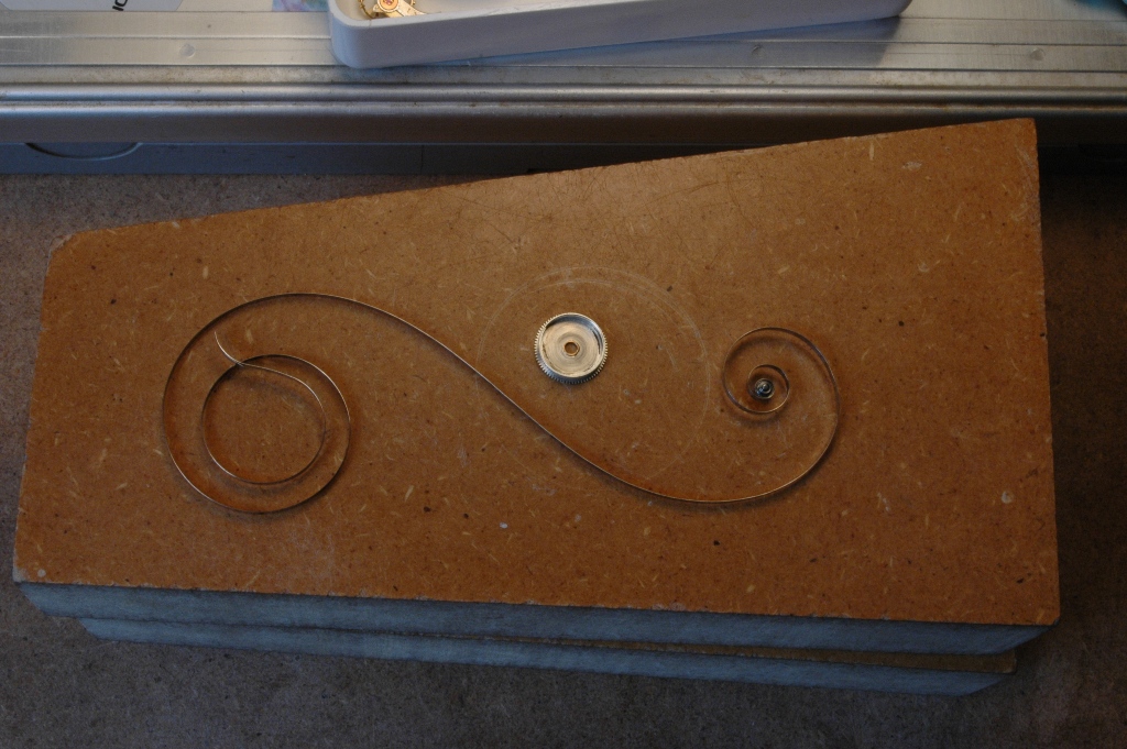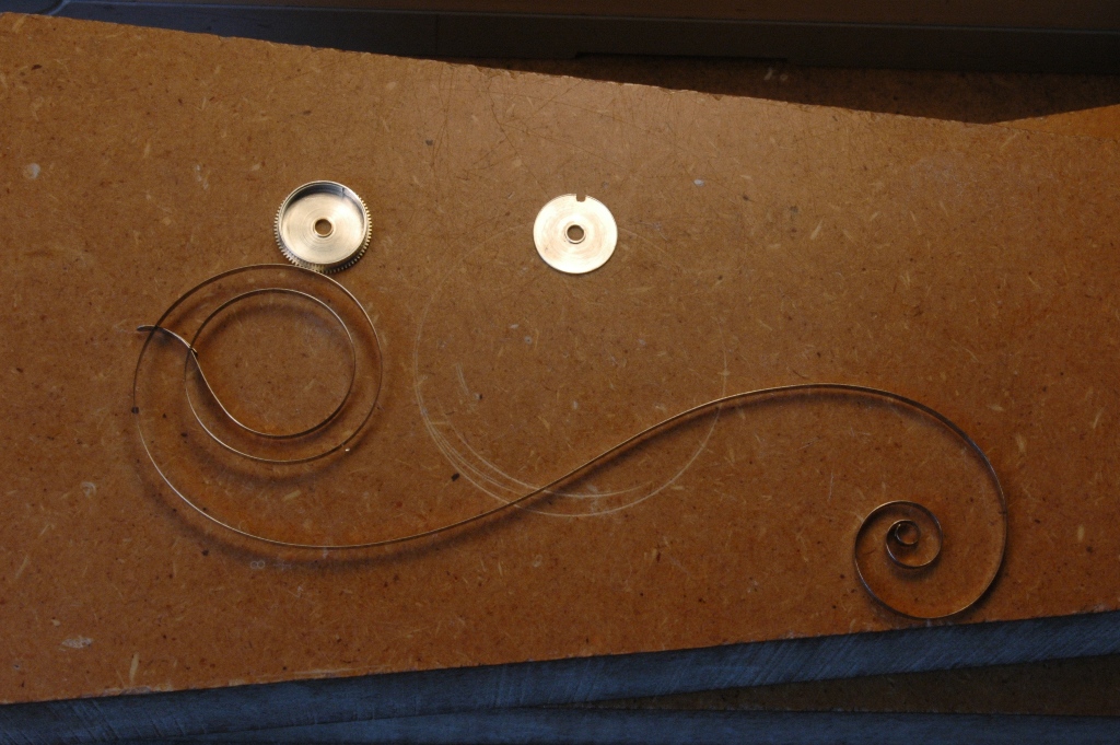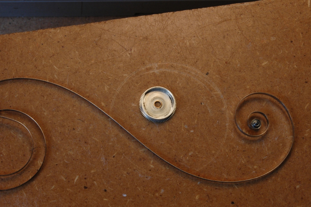 Voilà le ressort et son barillet nettoyés, puis ensuite l'encapsulage à l'aide de l'estrapade :