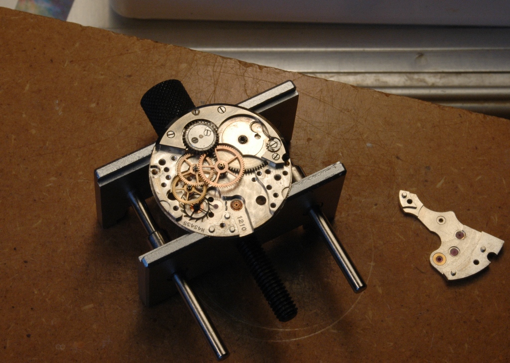 Vient ensuite la dépose du pont de barillet, puis du barillet et de tous les mobiles libres :