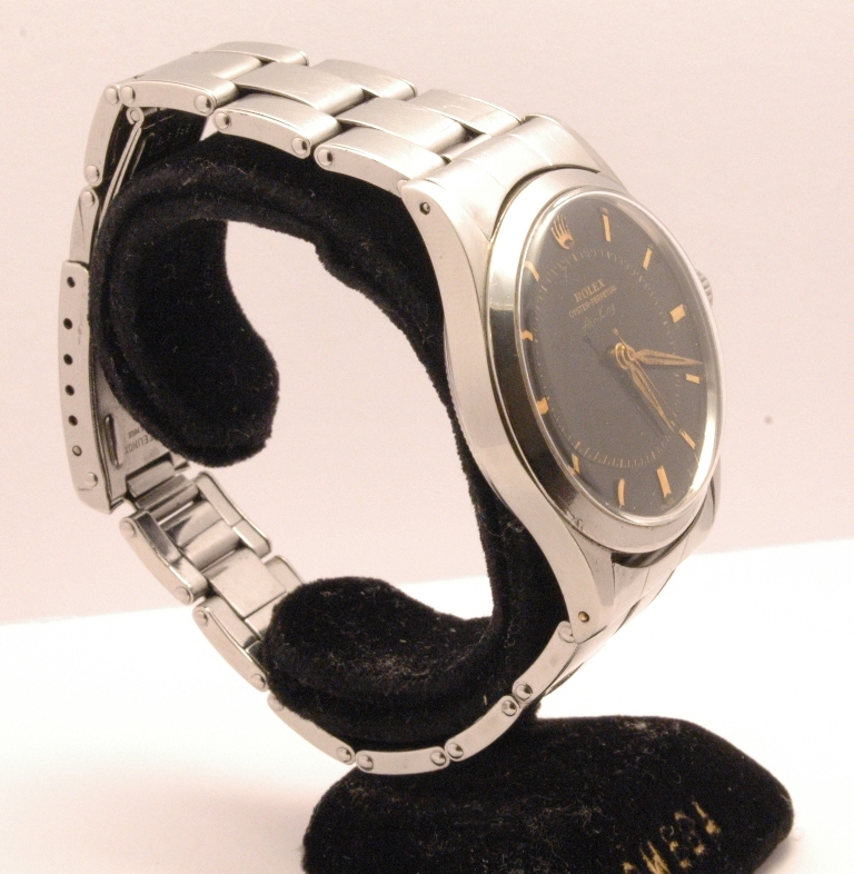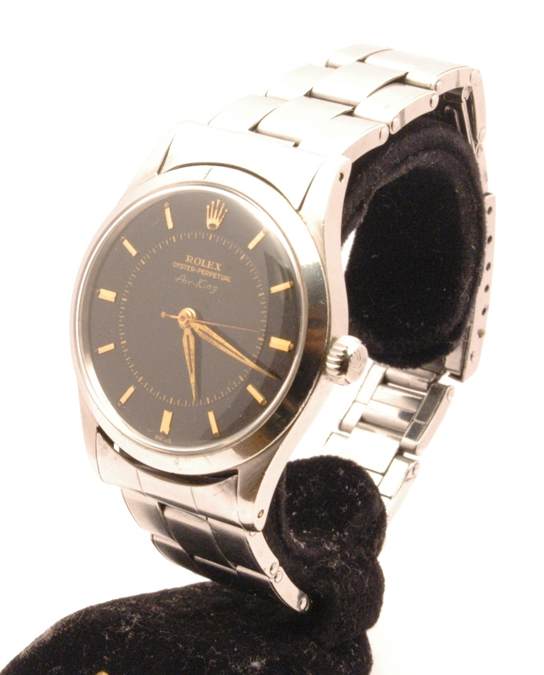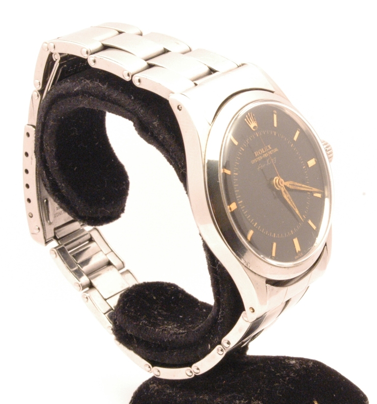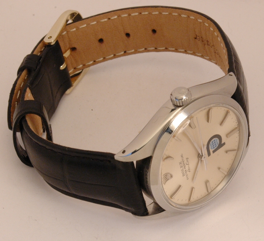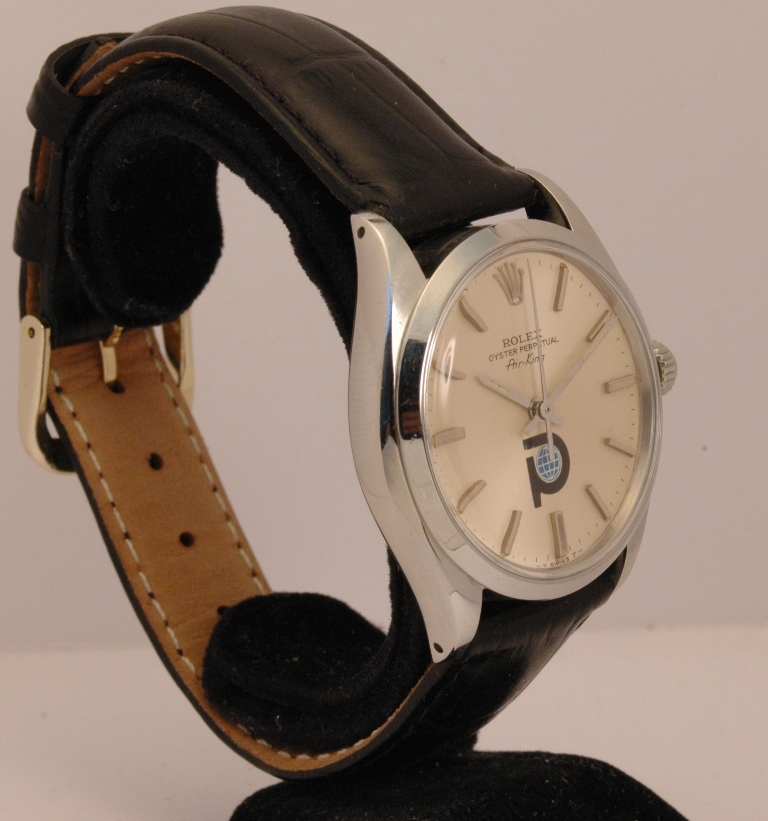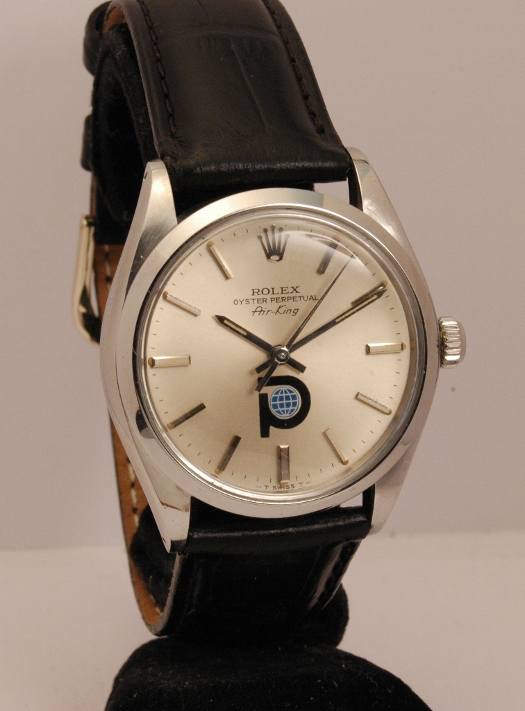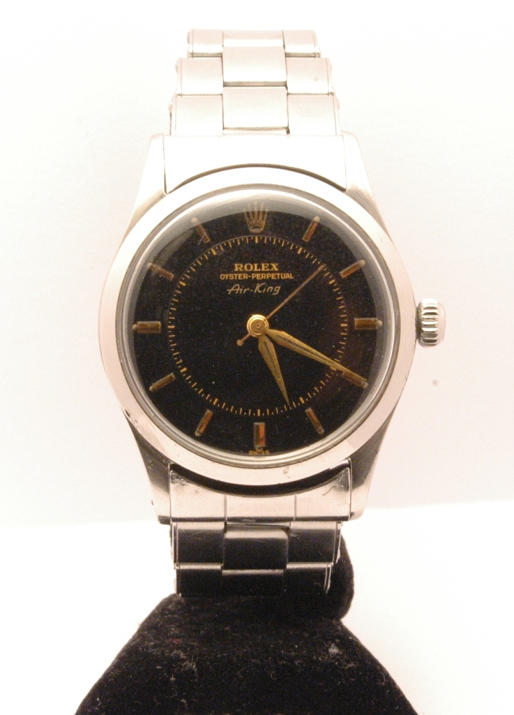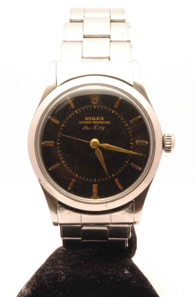 L'Air King a un design très proche de l'Oyster date, en plus raffiné. Ci-après un des premiers modèles d'Air King, à cadran gilt et boitier à cotés plats (les modèles suivants sont bombés)...